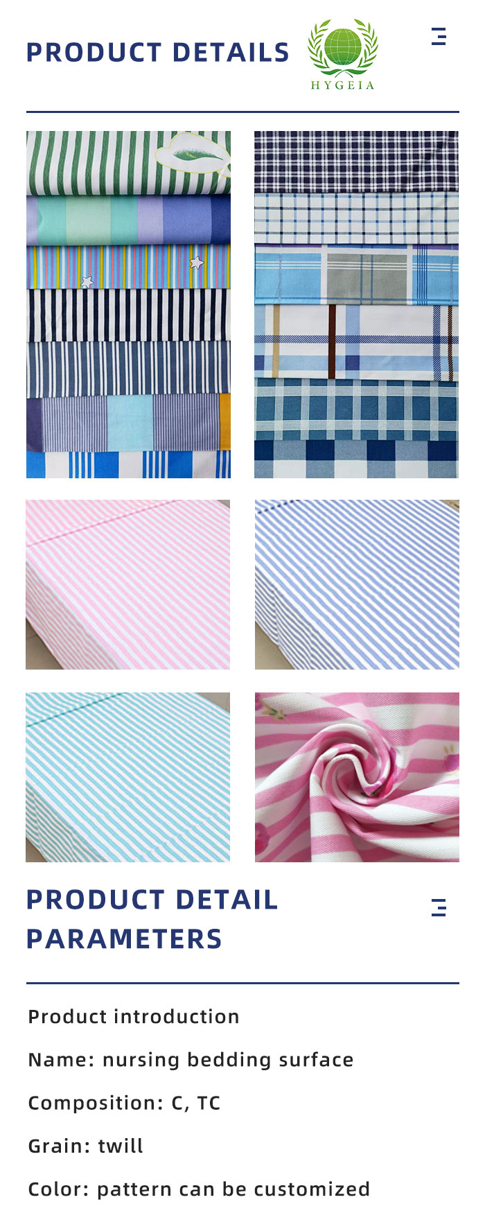 Striped and checked medical bedding fabric