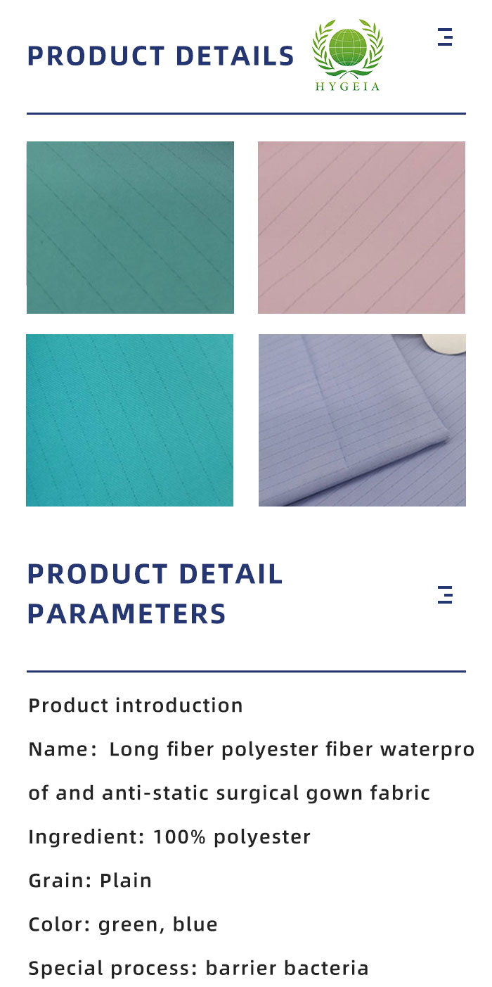 Long fiber polyester fiber waterproof and anti-static surgical gown fabric
